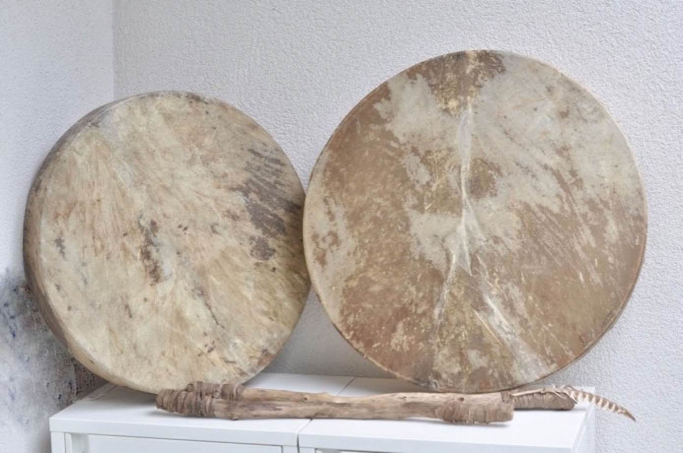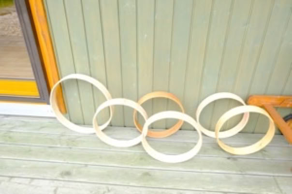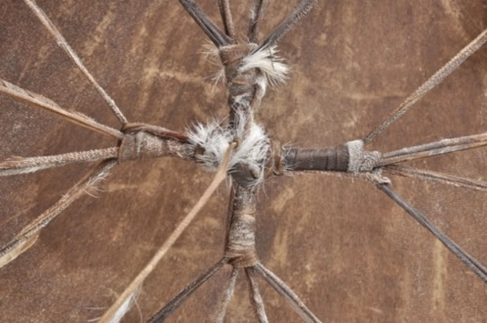 všetok materiál na výrobu bubna: drevený rám, kožu a ďalšie potreby a náradie